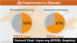 Під контролем України Крим також був регіоном дотаційним, але в розумних масштабах. Половину необхідних коштів півострів заробляв сам, половину надсилали з «материка». В російських умовах Крим самостійно заробив лише третину, решту 67% направили з російського центру. За цим показником півострів можна порівняти з Дагестаном.