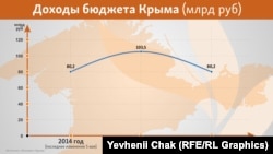 Щедрий грошовий дощ з центру привів до роздування кримської скарбниці в рублевому еквіваленті. Відразу після анексії Сімферополь розпоряджався 80 млрд рублів, а через рік – уже 103 млрд. Але в реальності картина була зовсім не така райдужна. Для Росії рік 2014 розпочався з курсу 32,6 рублів за 1 долар, а закінчився 56,2 рублями, тобто в середньому 44,5 рублі за долар. У випадку з кримським бюджетом це означало 80,2 млрд/44,5 = 1,8 млрд доларів. В цілому непогано.