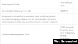 Остання володіла кримською «Візою» ще до російської анексії Криму. Зараз ДП «Торговий дім «Віза», раніше зареєстрований у «місті Сімферополь, Автономна Республіка Крим, Україна», значиться в українському реєстрі як чинне підприємство ‒ суб'єкт вільної економічної зони «Крим».
