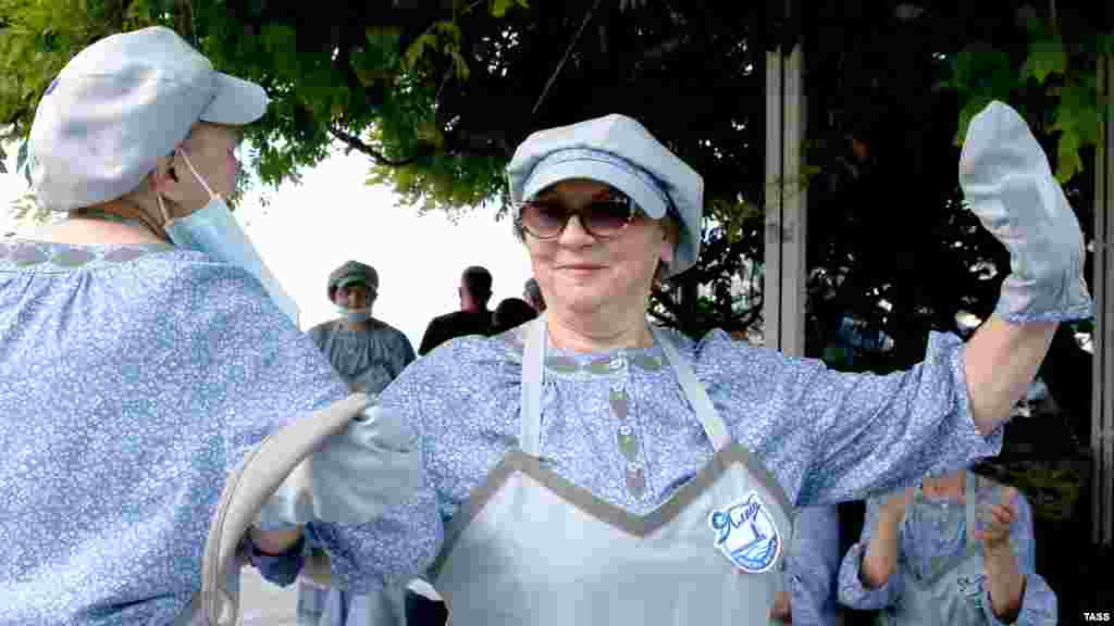 Ялтинські двірники давали «клятву чистоті» в новому, спеціально пошитому спецодязі, стилізованому в російському стилі ХIX століття.