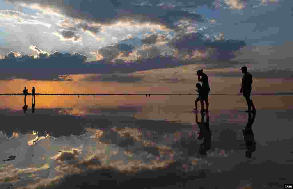 Над солоним озером Сасик-Сиваш, розташованим між Євпаторією і Саками, заходить сонце.