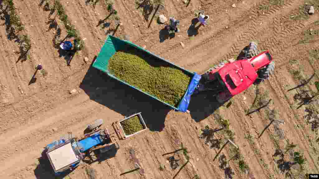 У Криму почали збір врожаю винограду технічних сортів (для вина) на виноградниках заводу марочних вин «Коктебель». Загальна площа виноградників – 1150 га.