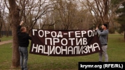 Анархісти розтягнули чорні гасла на розтяжках і прикріпили їх до дерев і стовпів. Гасла говорили «Місто-герой (Севастополь) – проти націоналізму», «Свобода, рівність і братерство», «Свобода або смерть».