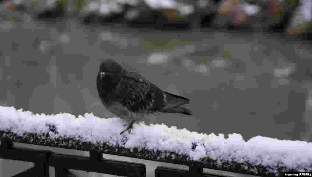 Зима вирішила нагадати про себе напередодні вночі. У Сімферополі невеликий снігопад тривав практично до світанку. Вранці 23 березня перед городянами постала типова зимова картина – все навколо біле-біле. Щоправда, на проїжджій частині вулиць, тротуарах та доріжках сніговий покрив практично відразу розтанув. А ось на деревах, дахах будівель, траві сніговий покрив зберігався і після обіду.