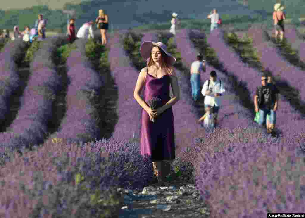 У Криму триває цвітіння лавандових полів. Поле під Бахчисараєм – одне з місць масового паломництва людей з фотокамерами. Так бузкове море перетворюється на море фотолюбителів.