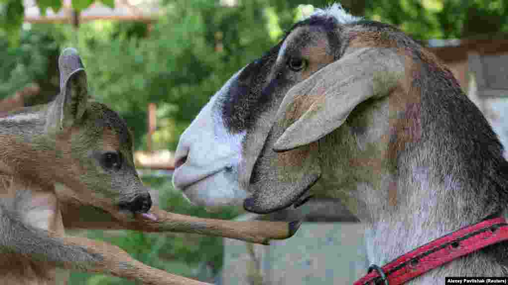 У Бахчисараї коза стала прийомною матір'ю для дитинчати косулі | Кримське фото дня
