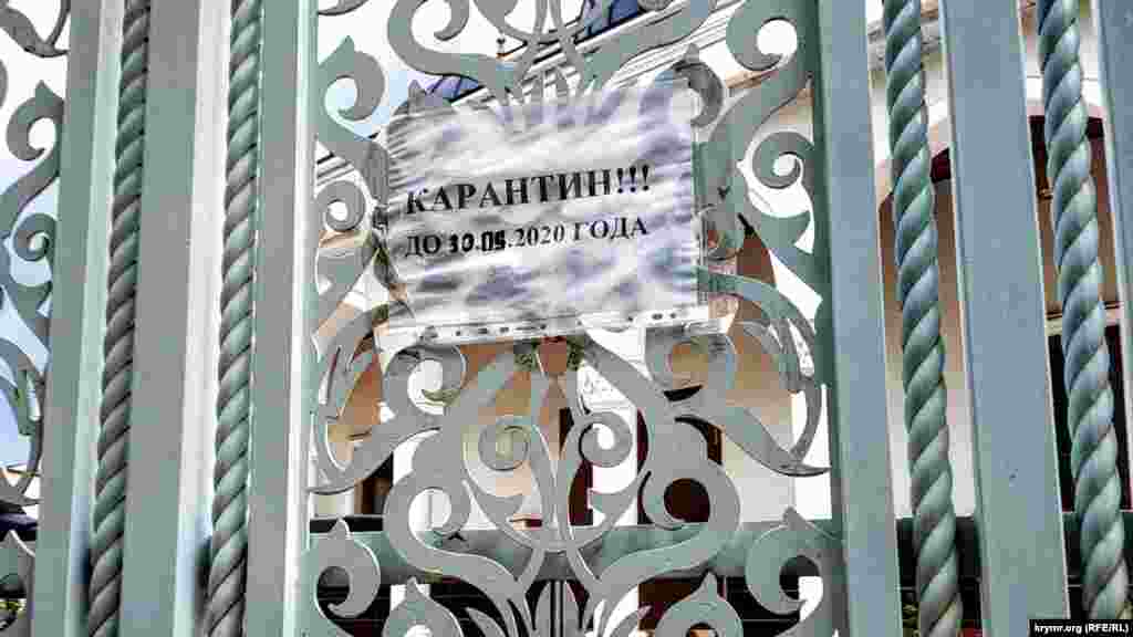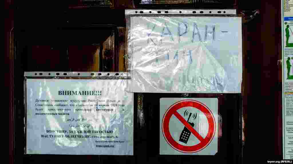 Мечеть Сєїт-Сеттар Джамі в Сімферополі. На вході табличка з інформацією про те, що карантин до кінця травня
